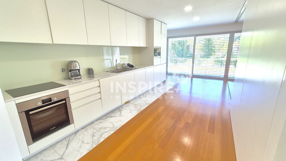 – Cozinha 21m2 equipada, bancada em silestone e móveis lacados a branco
